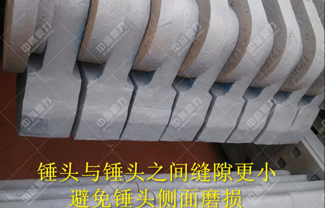 1、配件使用壽命長——主襯板厚度增加,延長使用壽命;錘頭與錘頭之間縫隙更小,避免錘頭側面磨損;錘盤上安裝護套;