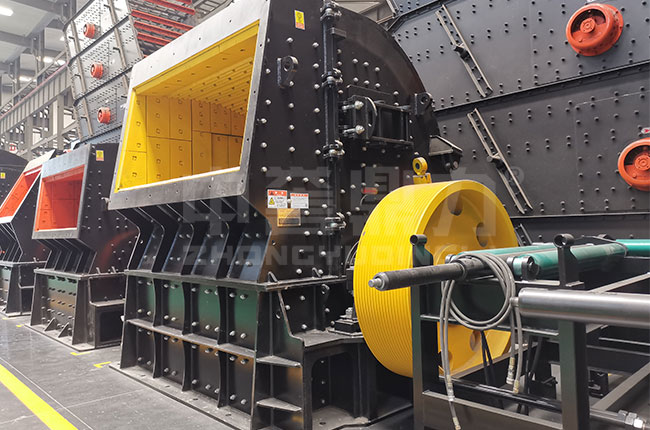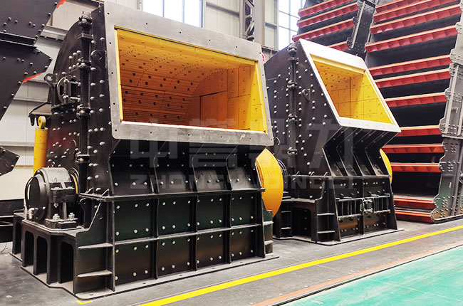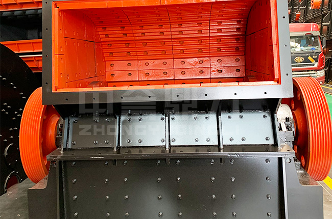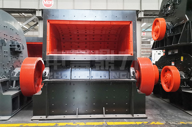 左側(cè)圖片就是反擊式粉碎機(jī)的結(jié)構(gòu)圖,該設(shè)備主要由機(jī)架、襯板、反擊襯板、反擊架、進(jìn)料斗、電機(jī)、傳動(dòng)裝置等組成,其中反擊板分為三組,形成兩個(gè)粉碎腔,在第一個(gè)粉碎腔可以把≤850mm的物料粉碎成100mm以下。在第二個(gè)粉碎腔中可以把100mm的物料在粉碎至20mm以下,平常需要兩臺(tái)設(shè)備來粉碎,這里只需要一臺(tái)反擊式粉碎機(jī),過程簡化為一段破碎,另外設(shè)備整體結(jié)構(gòu)緊湊、外形美觀。