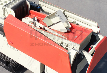 移動式建筑垃圾破碎篩分站的給料系統有料倉和振動給料機兩部分,料倉用于儲存原料,容積根據產量大小有所不同,喂料機安裝在料倉下方,自帶預篩分功能,篩分出來的土通過下方的料斗落入出土皮帶機,運離機身。