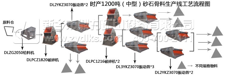 甘肅,地處黃河中上游,地勢自西南向東北傾斜,地形狹長。多山、多丘陵,主要的山脈有祁連山、烏鞘嶺、六盤山。山地和丘陵的占地面積占省的78%之多。據悉已發現各類礦種173種,查明礦產資源的礦種數有79種。其中大型礦床77個、中型202個、小型612個。建筑類原材料有花崗巖、石灰石、頁巖、水泥配料用粘土等。其硬度中等,用壓強不低于280Mpa的錘式破碎機進行加工就可以滿足建筑市場砂石骨料粒度的需求。下面介紹下甘肅地區分布較多的中型砂石骨料生產線流程運作以及奉上砂石生產線工藝流程圖。