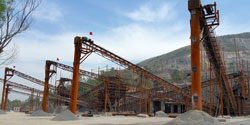 先未破碎的原料被輸送至振動給料機(jī)中,物料被勻速的輸送至重型錘式破碎機(jī)破碎腔中進(jìn)行破碎工作,獲得的物料經(jīng)過振動篩的篩分,篩分出不同規(guī)格的物料,滿足粒度的物料被皮帶輸送機(jī)輸送到成品料堆,不滿足粒度的物料可經(jīng)過二級破碎機(jī)進(jìn)行再次破碎。同時也可配置ZSJ雙轉(zhuǎn)子制砂機(jī)以及洗砂機(jī),進(jìn)行砂石物料的生產(chǎn)。