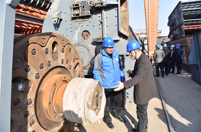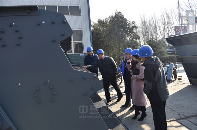 在生產車間,考察團對中譽鼎力振動篩、重型錘式反擊破碎機的設計進行了詳細了解。中譽鼎力注重產品質量、不斷精益求精的發展理念贏得了眾人一致贊許。