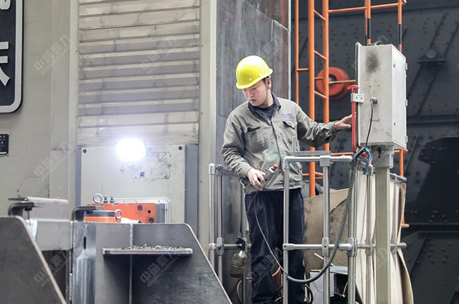 在中譽鼎力智能化一體生產車間,數控鏜銑床發揮適應性強、加工精度高、加工質量穩定和生產效率高等優點,為公司破碎設備的高品質制造、高性能運轉提供了有力保障。這款高精端加工設備得以操作運行,離不開生產部機加工班組鏜銑工韓俊的功勞。