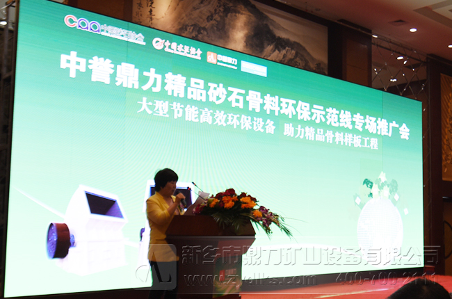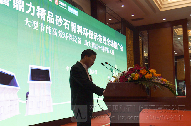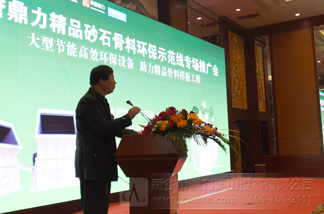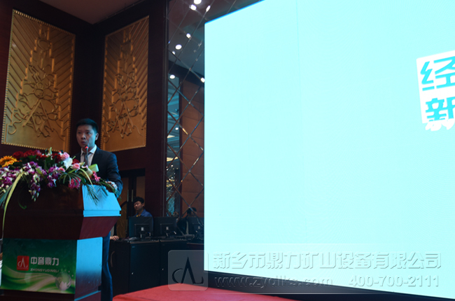 接著中譽鼎力礦山設備有限公司總經理張方致辭,對中譽鼎力礦山設備的發展歷史、目前發展情況、及未來的發展趨勢進行了詳細的介紹,向與會嘉賓了我們公司成套破碎篩分生產線設備中的先設備例如PC2125破碎機設備、4米*10米振動篩設備、ZSJ雙轉子制砂整形機、ZG系列振動給料機,并預祝大會圓滿成功。