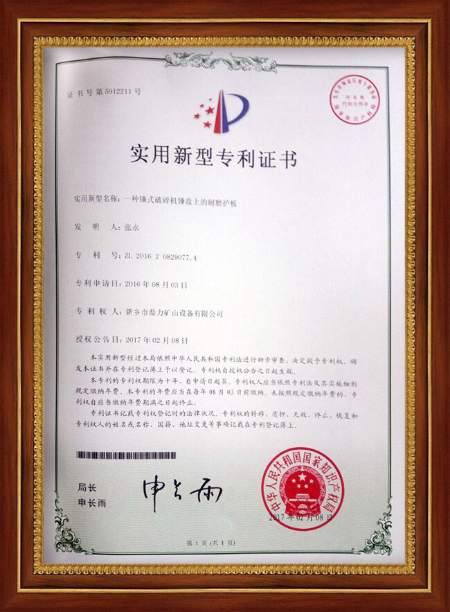 中譽鼎力堅持走一條科研、產品、客戶為一體的發展道路,在科研投入上逐年增加資金和人力,在原有公司總部科技研發的基礎上,在武漢成立中譽鼎力又一科技研發,兩大研發源源不斷為公司注入新的發展動力,取得了豐碩的成果,獲得家多項,包括錘頭襯板、護邊、錘式破碎機錘盤等多個方面。
