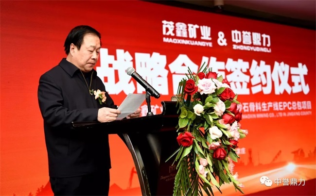 河南中譽鼎力智能裝備有限公司董事長張治民在致辭中表示,這個儀式,標志著兩家企業的戰略合作正式啟動。中譽鼎力有信心,把茂鑫礦業時產3000噸生產線建成當地環保生產線的榜樣。簽約儀式完成以后,明天項目各部門就會進入工地開始前期各項工作。中譽鼎力作為項目的EPC總承包商,會在短時間內,把環保、智能的砂石骨料生產線呈現在大家面前。