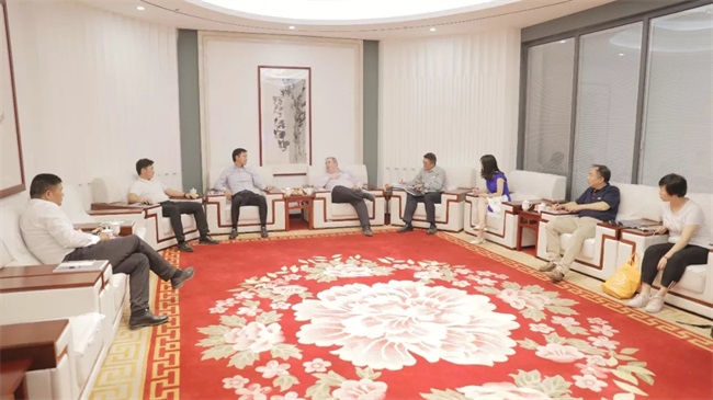 在商務(wù)會議室,考察團成員與河南中譽鼎力智能裝備有限公司董事長張治民、副總經(jīng)理原文秋、新鄉(xiāng)市中譽鼎力裝備設(shè)計有限公司總經(jīng)理馮濤等人進行座談,共同探討礦業(yè)新技術(shù)應(yīng)用與發(fā)展。