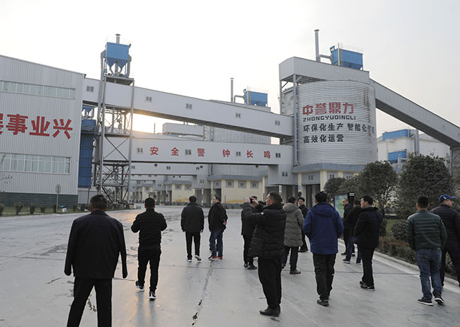 河南中譽鼎力智能裝備有限公司董事長張治民、中譽重工總經理兼銷售總監陳樹凱、湖北服務總經理孫利江陪同,并詳細介紹各項情況。考察團先參觀了中譽鼎力在衛輝承建的代表項目——藍天環保材料有限公司四位一體建材項目和中譽鼎力EPC承建的資源有限公司時產3000噸砂石骨料生產線。