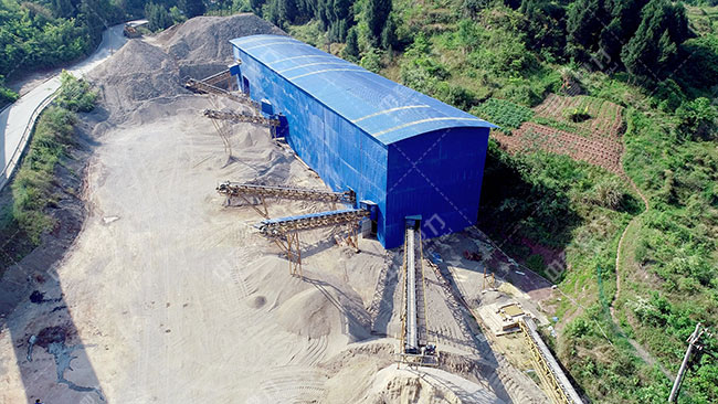 破碎工藝:圓錐磕石機+制砂機+震動喂料機+圓石子篩+輸送系統+選粉設備