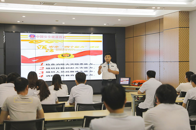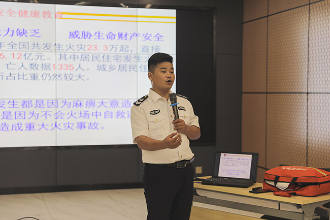 在之后的消防安知識(shí)培訓(xùn)講座上,張?zhí)m濤教官?gòu)膶?shí)際案例出發(fā),圍繞消防安“四個(gè)能力建設(shè)”、應(yīng)急處置程序和逃生技巧等內(nèi)容進(jìn)行了詳細(xì)而具體的講解。