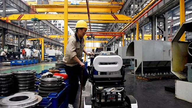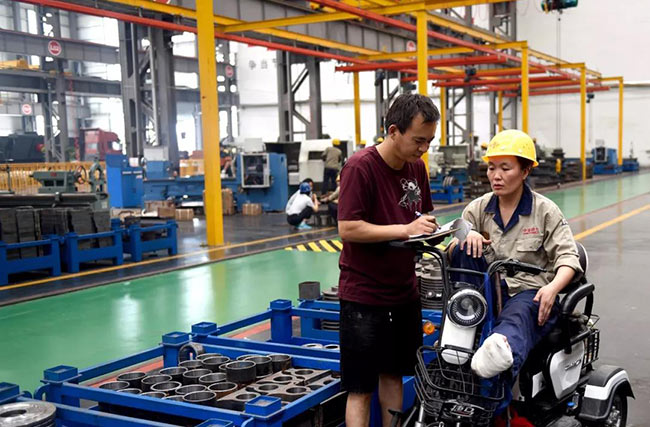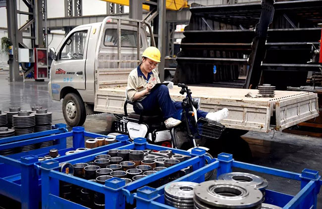 7月22日上午10點(diǎn),中譽(yù)鼎力智能裝備生產(chǎn)車間機(jī)加工區(qū)新到了一批外協(xié)件,張衛(wèi)霞坐在電動(dòng)三輪車上依次仔細(xì)地檢查著每一個(gè)零部件:觀察、測量、記錄、填單……嚴(yán)謹(jǐn)?shù)馁|(zhì)檢流程沒有因?yàn)槟_受傷而有所耽誤。