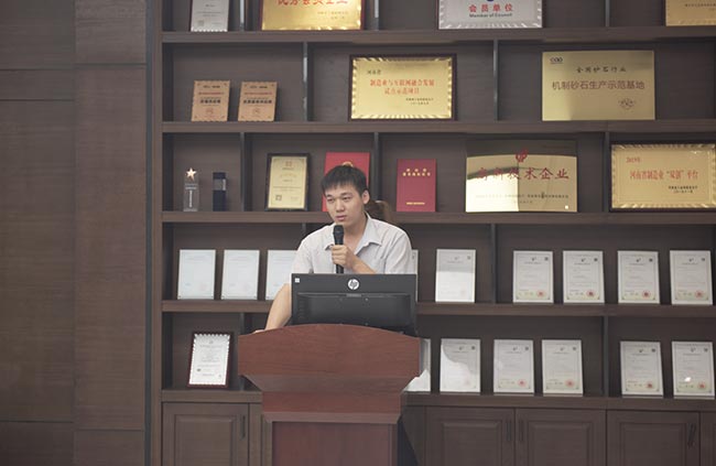發(fā)布會(huì)上,河南中譽(yù)鼎力智能裝備有限公司技術(shù)部長(zhǎng)劉海淘先后為大家介紹了DLPCZ、DLPC系列錘式破碎機(jī)、DL2YKZ3070振動(dòng)篩密封鋼構(gòu)、給料+破碎整體鋼構(gòu)、移動(dòng)式破碎站、干法制砂樓、選粉機(jī)等公司新上市設(shè)備,對(duì)設(shè)備的特點(diǎn)、分類、組成及安裝維護(hù)等內(nèi)容進(jìn)行了詳細(xì)的講解與說明,讓各地服務(wù)銷售代表對(duì)公司新上市設(shè)備及其優(yōu)勢(shì)有了更深層次的了解和認(rèn)識(shí),便于今后營(yíng)銷服務(wù)工作的開展。
