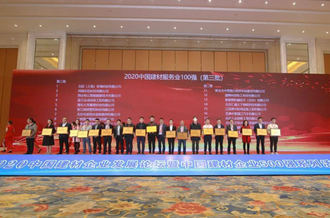 11月5日-6日,由中建筑材料企業(yè)管理協(xié)會舉辦的“2020年中建材企業(yè)發(fā)展論壇暨2020中建材企業(yè)500強(qiáng)系列活動(dòng)發(fā)布會”在安徽合肥隆重舉行。會上,中譽(yù)鼎力軟件科技股份有限公司榮獲“2020中建材服務(wù)業(yè)100強(qiáng)”稱號。