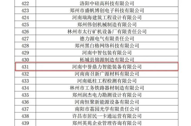 經(jīng)過為期10天的公示階段,河南中譽(yù)鼎力智能裝備有限公司順利通過“家高新技術(shù)企業(yè)”認(rèn)定!