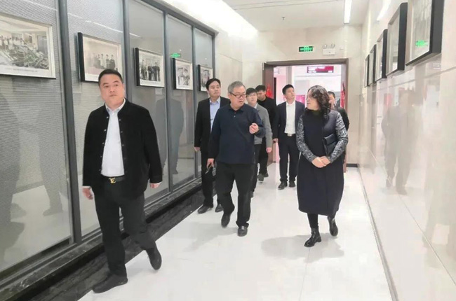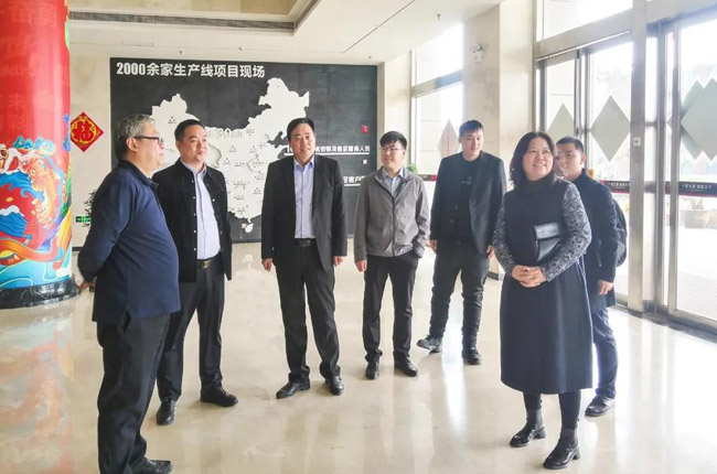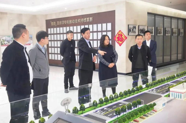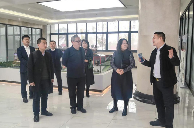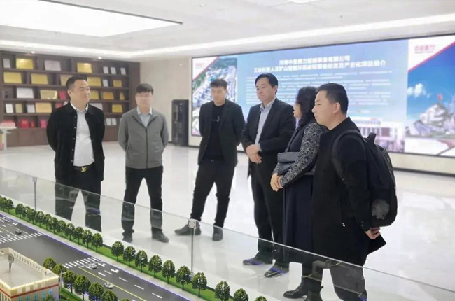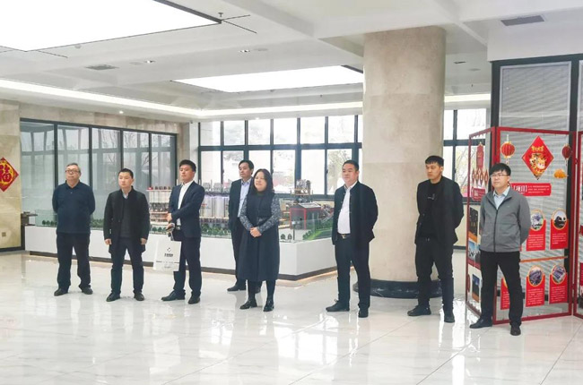在中譽鼎力智能裝備有限公司綜合辦公樓,考察團先后參觀了中譽鼎力發(fā)展歷程文化墻、多位一體循環(huán)建材產(chǎn)業(yè)園項目沙盤,并觀看了公司相關(guān)宣傳片,對中譽鼎力主營業(yè)務(wù)及近年來發(fā)展情況有了進一步了解。