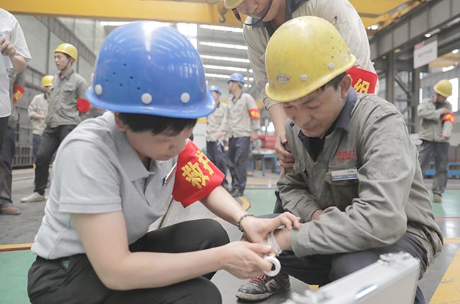 “起火啦,起火啦~”隨著急促呼喊聲和火情信息逐級上報(bào),中譽(yù)鼎力生產(chǎn)車間體員工緊急集合,消防應(yīng)急綜合演練正式啟動(dòng)。