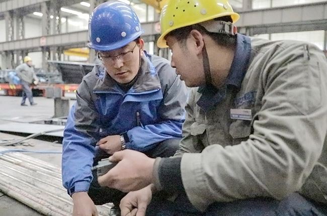 面對訂單排產時間緊、產品設計難度高、生產安裝調試任務重的重重困難,作為三臺設備的主設計師,楊鵬飛毅然決然選擇迎難而上。他大膽創新、小心求證,與研發小組成員多次轉換思維、變更受力方式、改進設計方案,與履帶供應商不斷溝通、運輸限……每天工作12個小時以上,只為盡快滿足客戶需求。