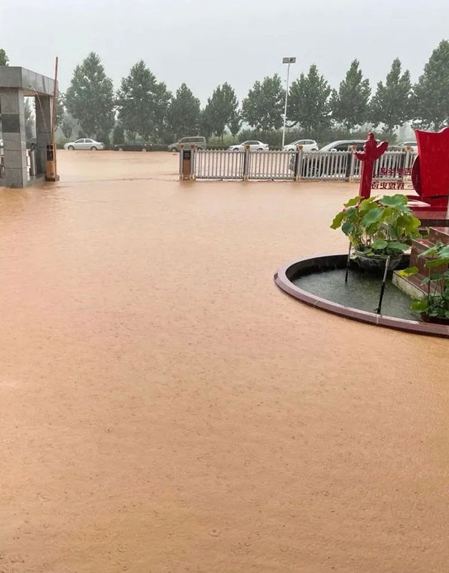 廠區降水同樣嚴重,在崗的鼎力人已盡力守住車間倉庫