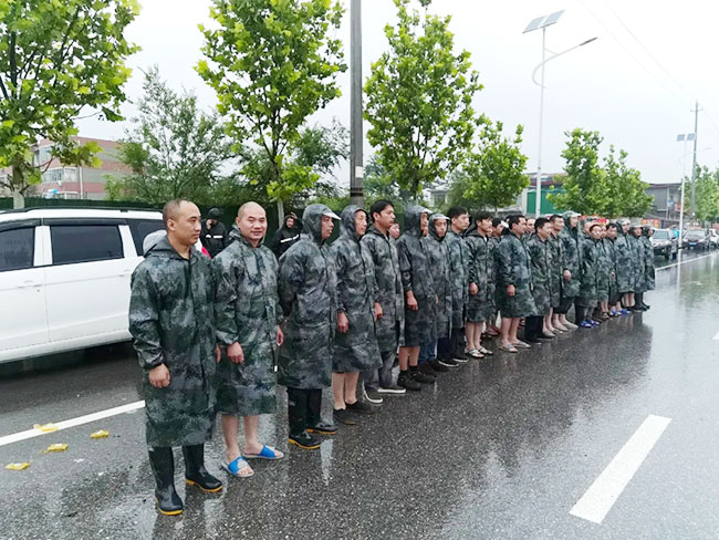 21日晚上十點半,得知衛輝山上要泄洪,公司員工群里緊急通知所有在廠男職工迅速集合,你搬沙袋我推土,趕緊堵住車間大門,生產設備不受損壞。大家齊上陣,共努力,爭分奪秒為打贏這場抗洪戰爭而努力。
