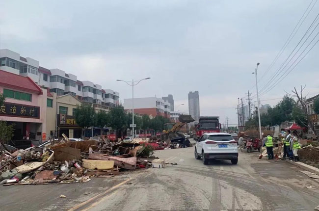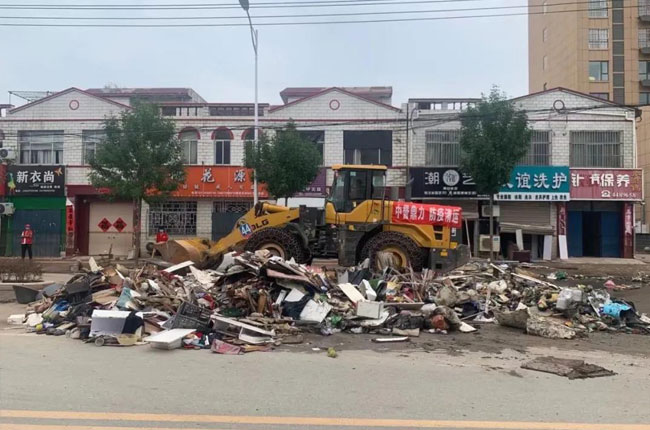 8月5日下午,河南中譽鼎力智能裝備有限公司董事長張治民主動停止公司運輸業務,親自帶公司150名員工、15輛鏟車、30輛清運車無償支援家鄉衛輝災后垃圾及時清運工作,已有多條街道恢復清潔,并將稱參與為惠城區的垃圾清運工作。
