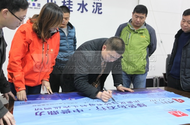 圖為川桂水泥負責人為活動題詞