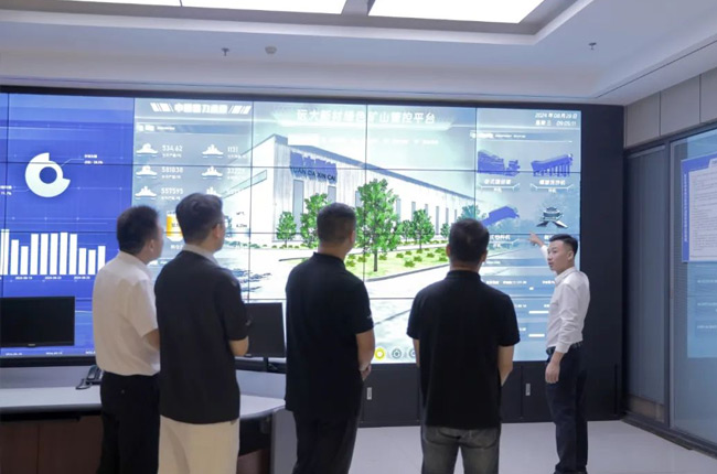 在中譽鼎力綠色建材大數(shù)據(jù)中心和智能化大廳,王順凡、杜凡新先介紹了中譽鼎力的企業(yè)情況、產(chǎn)品研發(fā)、智能礦山、建材業(yè)務等內容。參觀團先后了解了中譽鼎力在智能礦山管理、建材線上交易、綠色建材產(chǎn)業(yè)園等方面的成果和應用。