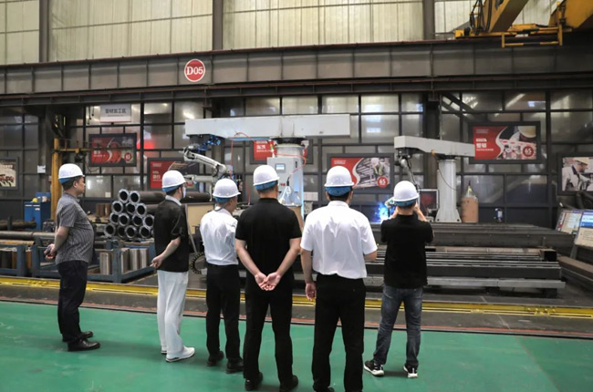 在中譽鼎力大型一體化智能車間,王順凡、杜凡新圍繞著公司的產(chǎn)品制造工藝流程、生產(chǎn)、加工細節(jié)等情況進行了介紹。