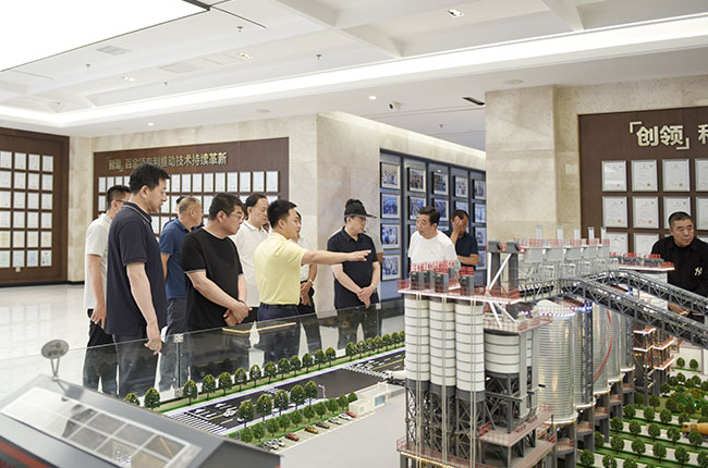 隨后,考察團一行來到河南中譽鼎力智能裝備有限公司,實地參觀了中譽鼎力綠色建材工業互聯網大數據中心和多位一體循環建材產業園項目沙盤,對公司礦山智能管理系統研發及綠色建材項目承建運營等業務有了進一步了解。