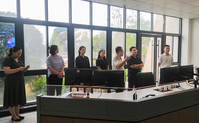 在中譽鼎力智能裝備有限公司綜合辦公樓,團市委導先后參觀了中譽鼎力企業文化墻、礦山管理云數據中心和多位一體循環建材產業園項目沙盤,對公司主營業務及近年來發展情況有了進一步了解。