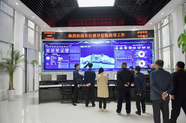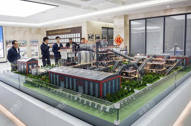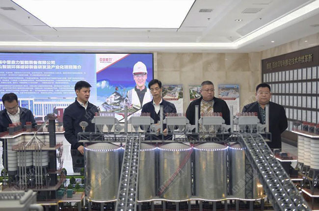 胡會長一行先來到中譽鼎力智能裝備有限公司,先后參觀了公司發展歷程文化墻、礦山管理云數據中心、多位一體循環建材產業園項目沙盤等,對中譽鼎力主營業務、創新發展情況有了進一步了解。