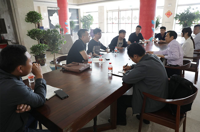 雙方結合破碎機錘頭磨損的檢測需求、成品料無人裝車需求、礦山智能管理大數據需求等主題內容進行了深入的技術探討與溝通交流,為二者達成進一步合作、共同推動科技創新成果轉化創造了良好契機。
