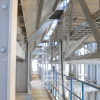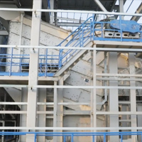 整個組裝式篩分結構由振動篩主機、振動篩框架、樓體鋼構、振動篩附件、電動提升機構、巡檢廊道等部分組成,振動篩由振動篩框架支撐,振動篩附件由樓體鋼構支撐,樓體鋼構和振動篩附件不參與振動,使樓體鋼構的強度和穩定性更高。