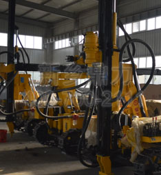 整機采用液壓傳動、自動除塵、自動卷電纜、履帶式行走、液壓油缸支配平行四邊形升降,在采掘巷道內可進行移動、升降、多臂錨桿鉆孔作業,鉆機所有的操縱都由手柄集中控制,完實現機械化。