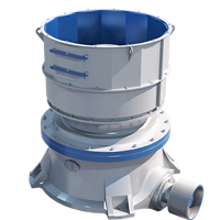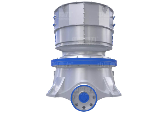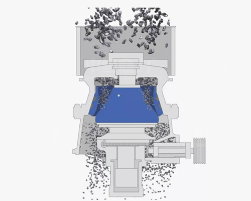 水平軸在電機(jī)帶動(dòng)下旋轉(zhuǎn),通過(guò)齒輪帶動(dòng)偏心套旋轉(zhuǎn),偏心套帶動(dòng)動(dòng)錐做圓錐擺動(dòng),與定錐形成連續(xù)擠壓,達(dá)到破碎石塊的目的。 通過(guò)調(diào)整動(dòng)錐底部的液壓缸,可以使動(dòng)錐上下運(yùn)動(dòng),從而控制排礦口的大小,進(jìn)而達(dá)到調(diào)成產(chǎn)品粒度大小的目的。液壓缸具有過(guò)鐵保護(hù)功能,當(dāng)有不可破碎物進(jìn)入破碎腔,液壓缸控制動(dòng)錐下落,不可破碎物下落排出后,動(dòng)錐自動(dòng)恢復(fù),設(shè)備恢復(fù)到正常工作狀態(tài)。