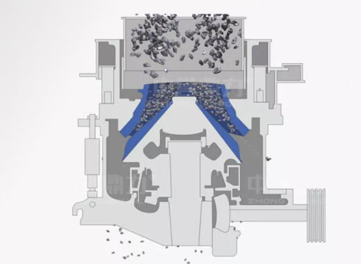 多缸液壓圓錐破碎機結(jié)構(gòu)簡單,由電機、傳動軸、齒輪、偏心套、定錐、動錐等部分組成,采用擠壓式的工作原理,電機通過三角帶、傳動軸、傘齒輪副帶動偏心套旋轉(zhuǎn),動錐在偏心套的帶動下做旋擺運動。定錐和動錐時而靠近、時而偏離,360度對破碎腔內(nèi)的物料擠壓、搓攆破碎,破碎后的物料從下方排料口排出機腔。