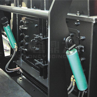 篦架通過液壓調(diào)節(jié),可根據(jù)所需要物料的大小和錘頭、篦板的磨損程度進(jìn)行上下調(diào)整,省時(shí)省力,安。同時(shí)配備絲桿、螺母組合的輔助調(diào)節(jié)方式用來(lái)定位篦架,避免液壓缸受力,保障液壓缸使用壽命