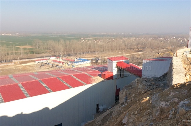 上圖為雷鳴礦業時產1500噸石料生產線外觀圖,采用封閉設計,在生產現場幾乎看不到粉塵溢出,可以大大對環境的污染,中譽鼎力力助力石料生產線企業,建設綠色環保砂石骨料生產線。