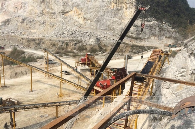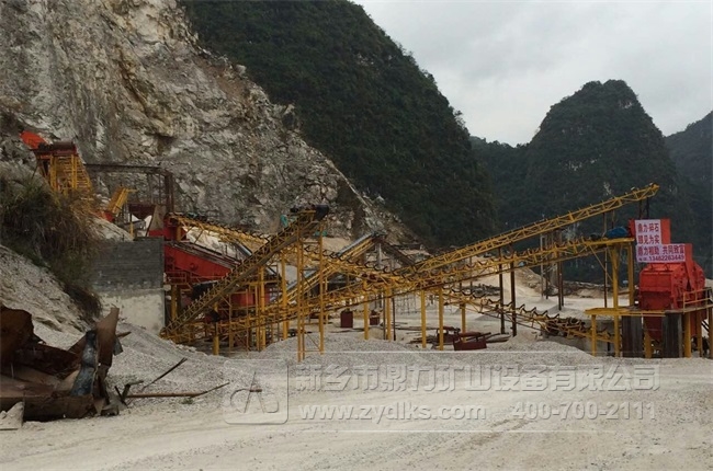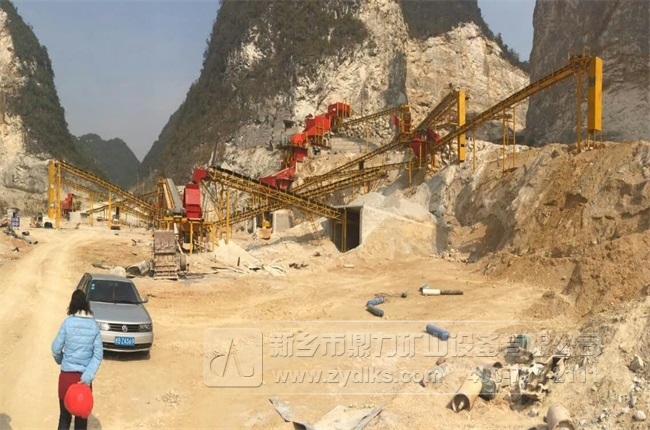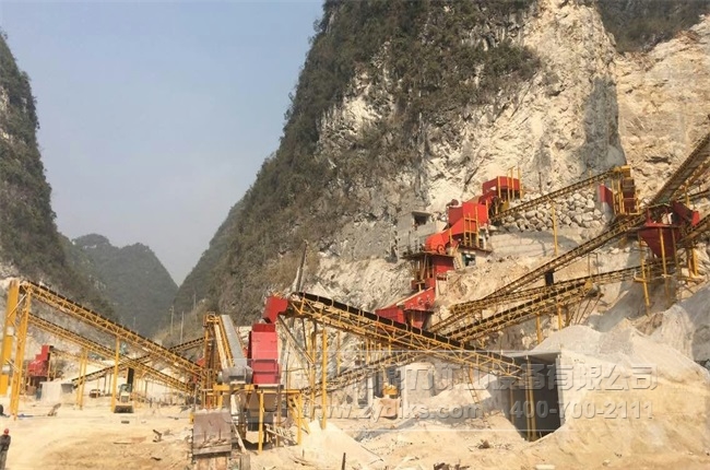 上圖為時產800噸碎石生產線的生產現場,依托山勢將山石進行破碎,不僅利用了當地的資源,而且減少了物料輸送過程中的能源消耗,生產效率大大提高。