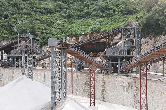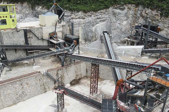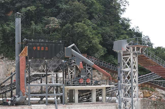 設備配置:DLZGC1550振動給料機、DLPZC1815重型錘式反擊破碎機、DLPC1220整形式破碎機、DL3YKZ3070振動篩、DL2YKZ3070振動篩、DL2YKZ2470振動篩、DLZSJ1213雙轉子制砂機及DLQMC脈沖袋式除塵器等套礦山設備