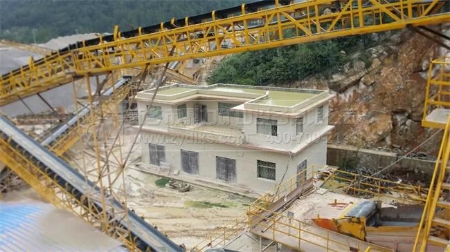 貴州惠水滿告砂石料生產線是一條時產砂近600噸,其它各種粒度成品石子合計1000噸左右的砂石生產線。主要配置的設備有ZG1550型振動給料機、PCZ1615重錘破2臺、ZSJ1218雙轉子整形制砂機、2YK2460振動篩8臺以及皮帶輸送器和相關除塵設備等。由于該地區盛產石灰石,我們新鄉鼎力生產的重型錘式破碎機和ZSJ雙轉子制砂機是很適合破碎石灰石等中硬度石料的,由于該生產線配置破碎設備破碎比大、產量高、整形效果好,所生產砂石顆粒均勻,粒型立體,抗壓性好,與其他廠家的砂石生產線相比,具有多的優勢,一次性成沙率可高達70%,該砂石生產線時產沙可達550噸,為客戶帶來了豐厚的利潤回報,獲得了客戶的很高的贊譽。