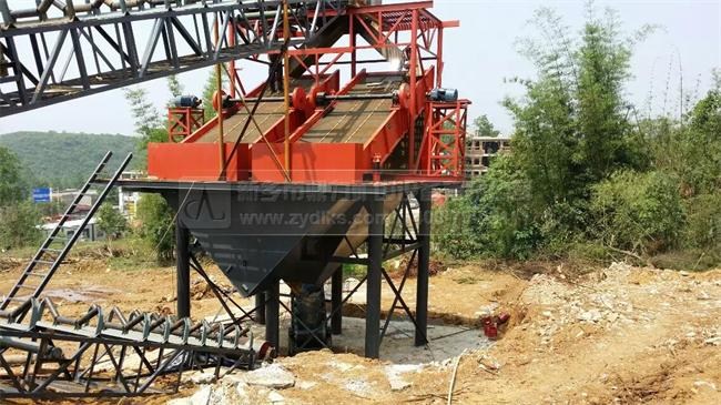 該條時(shí)產(chǎn)400噸砂石生產(chǎn)線先經(jīng)過(guò)PCZ重型錘式破碎機(jī)進(jìn)行破碎,然后進(jìn)入PCX整形錘式破碎機(jī),破碎后的物料經(jīng)振動(dòng)篩篩分分級(jí)后,符合粒度大小的石子被傳送至成品料堆,不符合的物料被傳送帶重新傳送至上道破碎設(shè)備進(jìn)行再次破碎,這就形成了閉路循環(huán)模式。這是一條節(jié)能的石料生產(chǎn)線,我們的錘式破碎機(jī)不僅破碎比大,產(chǎn)量高,而且整形效果好,所生產(chǎn)的石子粒度均勻,粒型立體,針片狀含量少,獲得了我們新老客戶(hù)的一致稱(chēng)贊。