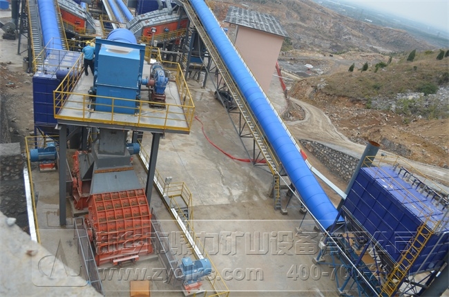 在設計上利用地形優勢,大大減少了土建成本,一臺主破分出普料、凈料兩條生產線,并共用一個皮帶廊,節約了成本的同時,給客戶提供了不同價位的產品選擇。同時設計了環保解決方案,密閉收塵、石料利用、土方還田,被各大媒體報道,實現了經濟效益、社會效益雙豐收。