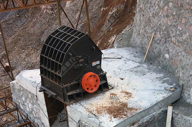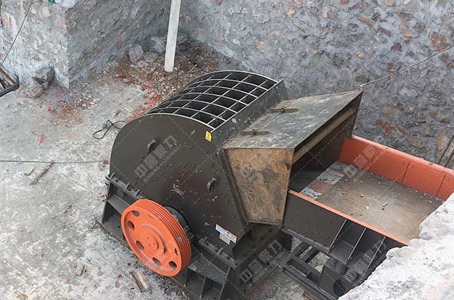 原料由振動(dòng)給料機(jī)均勻的輸送給重型錘式破碎機(jī)PCZ1615