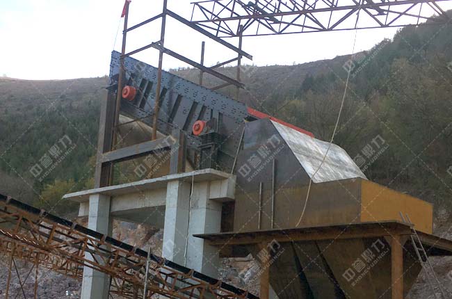 從現(xiàn)場圖片可以看到,該生產(chǎn)線設(shè)備配置簡單,是一條的中型石料破碎生產(chǎn)線配置,采用頭破+二破的形式,同時(shí)出粗骨料和砂石骨料。