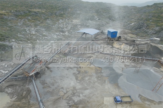 從這個時產350噸碎石制砂生產線圖集上可以看到,排列整齊的運輸車輛從生產線上將成品物料運送走,每一個出料口出產不同種類的成品物料,礦區道路被部硬化,保護了礦區的生產環境。