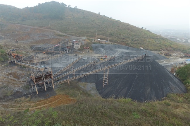 從這條時產500噸的重錘生產線圖片可以看到,該采石場開采原材料離生產場地距離較近,就近可以大批量進行成品物料加工,我們公司生產的設備,可以滿足客戶的要求,并且配套設備齊,整體生產情況是較好的。