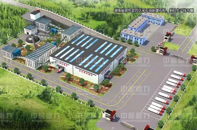 該項目占地約70畝,由合達建材石料有限公司投資,總投資約5000萬元,項目位于湖南省邵陽市邵東縣,由中譽鼎力承建生產線、提供礦山設備及智能系統。主要設備配置有DLZGC2050振動給料機、DLPCZ1620重型錘式反擊破碎機、DLPC1220整形式破碎機、DLZSJ1213雙轉子制砂機、DL3YKQ2460振動篩等,設計產能為時產1000噸骨料、200噸機制砂(年產300萬噸砂石骨料),出5種成品料,包括0-5mm、5-10mm、10-20mm、20-31.5mm和砂