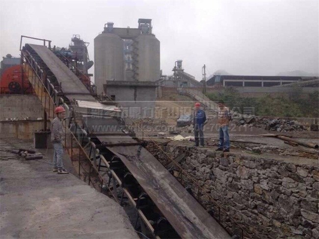此條生產線為水泥廠建設的破碎生產線,在現場可以看到此條生產線上的破碎機設備不僅可以破碎石灰石原材料,而且也可以破碎黏土、石膏等原材料,真正實現了一機兩用,破碎物料粒度比較,可以大大后續磨機的磨損程度。