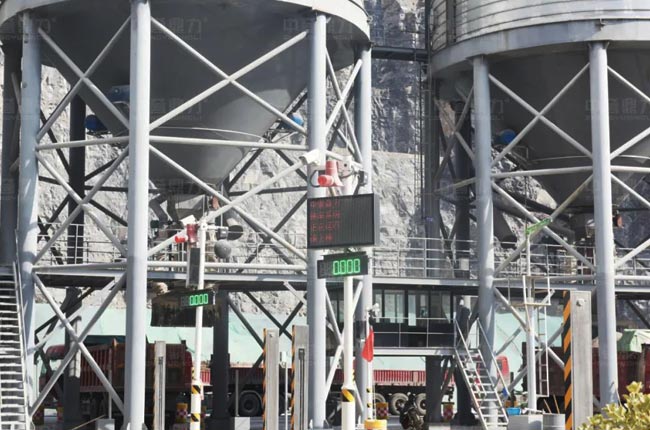 時產(chǎn)800噸石灰石碎石生產(chǎn)線采用自助裝車系統(tǒng)
