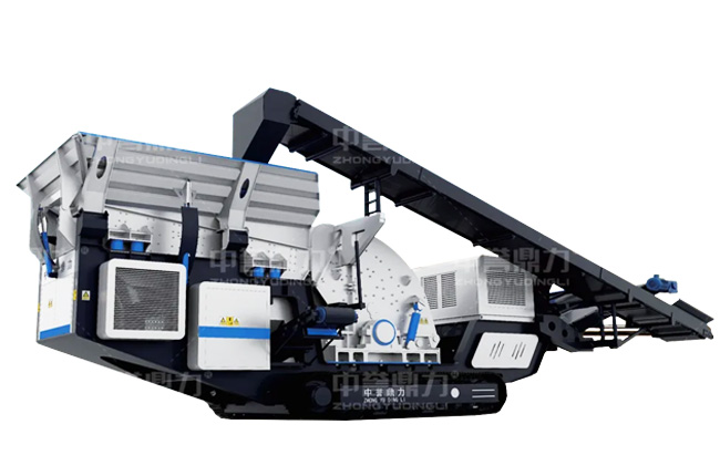 方案二(移動式):隧道洞渣碎石加工一般是短期工程,且場地空間不大,所以大多數選用移動式破碎設備,一臺設備即一條生產線,不需要進行地基建設,運至現場進行簡單固定后即可開機生產。主機設備可以根據碎石硬度大小靈活搭配。